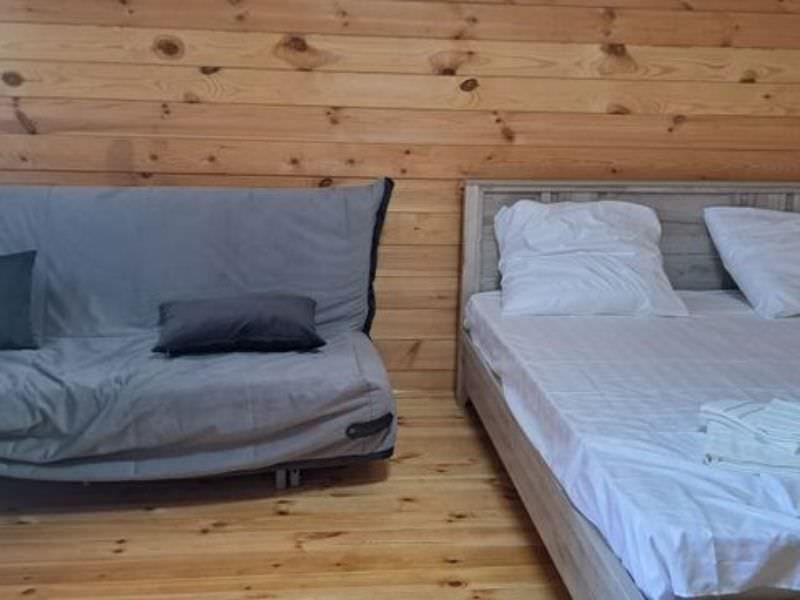 Площадь номера - 30 кв.м. 2 осн. места. 2 доп. места. Мебель: вешалка, диван раскладной (или кресло-кровать и еврораскладушка), зеркало, кровать двуспальная, прикроватные тумбочки, столик журнальный, стулья, шкаф. Оборудование: кондиционер, мини-холодильник, набор посуды, телевизор, электрочайник. Санузел: с душем, туалетные принадлежности, фен. Сервис: Wi-Fi бесплатно, смена полотенец (1 раз в 5 дней или по требованию), смена постельного белья (1 раз в 5 дней или по требованию), уборка номера.